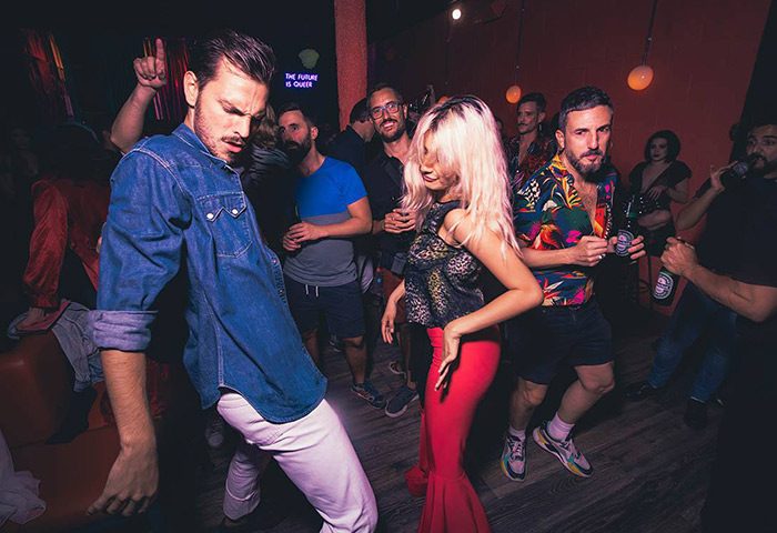 Candy Darling at the north-east of the Eixample gayborhood, opposite Barcalona University is a queer art-driven bar named after Andy Warhol’s trans icon of the same name. The venue blends activism, art, and nightlife. Its spacious layout includes a mini disco (the Wild Room) and queer-themed art installations, creating a safe space for gay patrons. Themed food, like“Bikini Darling” toasties, adds a playful, underground edge. There are nightly drag and burlesque shows, and the crowd has an activist vibe.