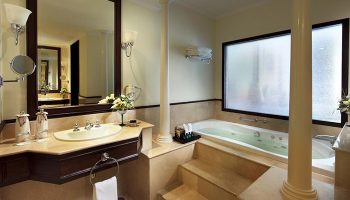 In addition to the 500-meter beach, the luxury resort’s facilities include a spa, fitness center, two outdoor pools, four onsite restaurants, and a large watersport center. The watersports guests offer sailing, paddleboards, windsurfing, and kayaks.