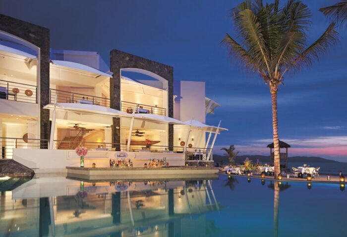 Dreams Vallarta Bay Resort is a 5-star luxury beachfront hotel in the Zona Hotelera district. Its generous all-inclusive package includes all meals, snacks, gourmet dining, and all drinks, including top-shelf spirits.