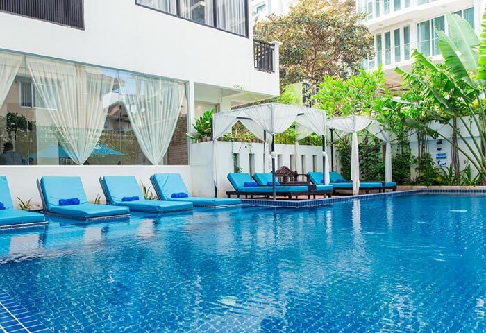 Home Chic Hotel is located a short walk from the Independence Monument, Central Market, and Wat Phnom, with most gay nightlife spots within a short tuk-tuk ride. It offers simple, clean, and comfortable rooms within minimalist colors and furnishings. The outdoor swimming pool is large and pleasant - get there early to snag one of the loungers that sit inside the water. There is a varied and delicious breakfast buffet, and the all-day restaurant serves tasty Cambodian and Western dishes. The staff are exceptionally friendly and attentive and will help you with anything you need for your trip.