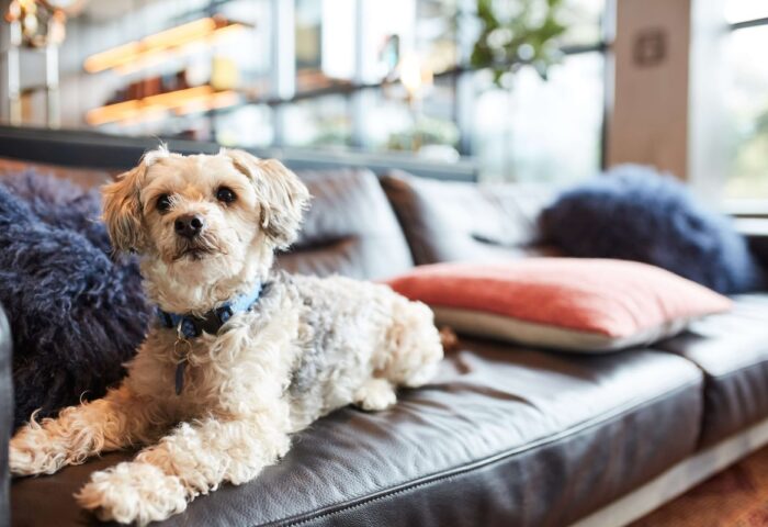 The rooms feature modern furnishings, soothing colors, and plush beds. Some rooms have balconies, and pets are welcome.