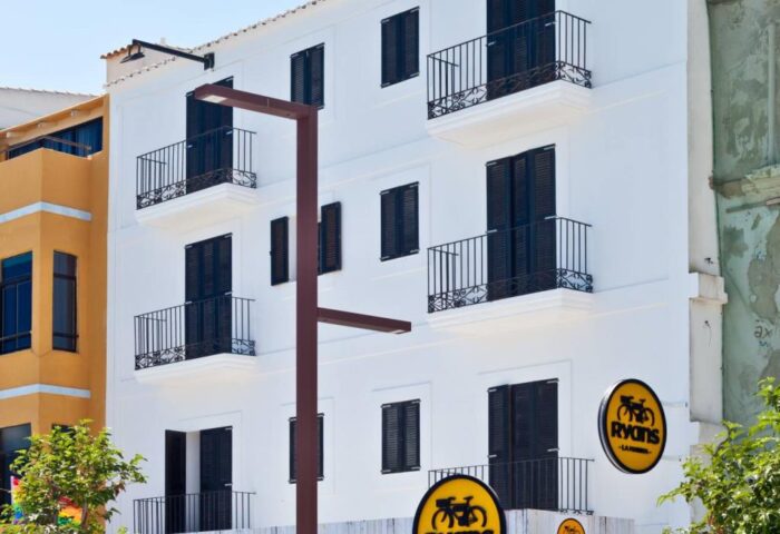 Hotel Ryans La Marina is located on the seafront right by Ibiza port, making it super convenient for boat day trips and booze cruises. Even more conveniently more gay travelers, the gay nightlife in Calle de la Virgen is just a 5-minute walk away. Rooms feature fun contemporary design, blending all-white minimalism with bold colorful murals and art. The Premium rooms are slightly larger - we especially recommend the Premium Penthouse Suite with its large rooftop terrace overlooking the sea. There’s a friendly gastropub with an outdoor terrace serving drinks and tapas and a sports bar with 8 large screens. Hotel Ryans La Marina is the most booked budget gay-friendly hotel in Ibiza.