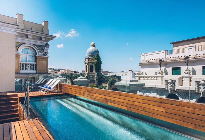 Although housed in a gorgeous early 20th-century building, the interiors are bright, colorful, and extremely modern. That said, original architectural elements like corniced ceilings and traditional iron balconies honor the building’s history. Some of the rooms feature modern secluded balconies with sun loungers, and some have their own jacuzzi.