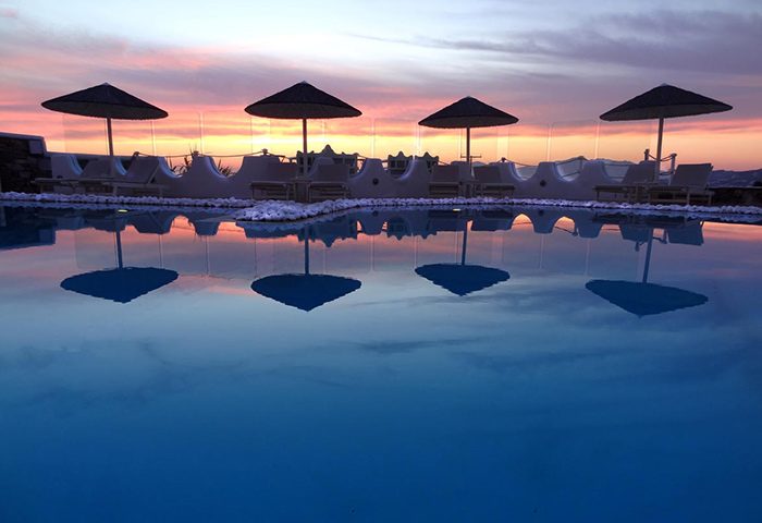 Ilio Maris is one of the longest-standing hotels on the island, which means the hotel’s lovely and attentive staff know what they’re doing. A 2010 renovation has helped keep the place looking fresh. It combines traditional Cycladean design – whitewashed walls, natural materials like stone and wood – with clean, modern lines and a minimalist aesthetic.