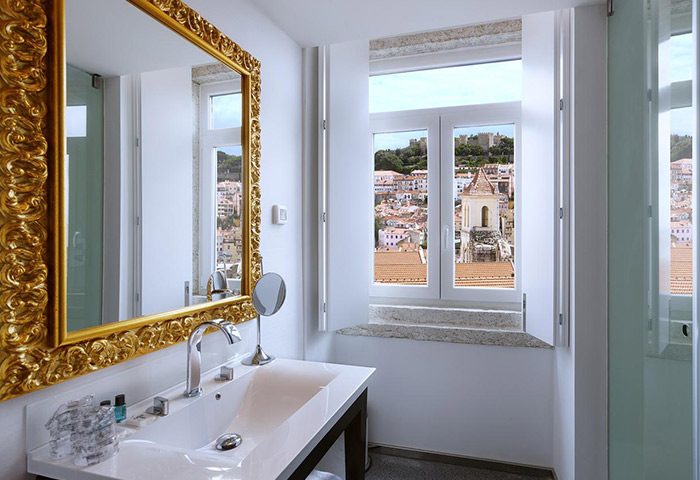 Rooms are decorated in soothing pastel tones and come in a variety of sizes, from a cozy 15m2 double room to a spacious Family Suite. All the rooms come with high-quality amenities and many offer impressive views of Lisbon and São Jorge Castle.