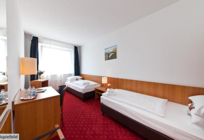 Novum Hotel Aldea Berlin Centrum is a no-frills budget hotel. The rooms are clean, well-maintained, and quite roomy for a budget city hotel. There are basic amenities like toiletries, TV, and tea and coffee making facilities. The family room, which sleeps five people in five individual single beds, is a very good option for friends traveling on a budget.