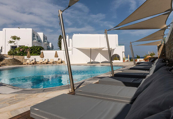 Poseidon prides itself on its breakfast, and rightly so – the choice is ample and the food is fresh and delicious. The saltwater pool has a beautiful view of the sea and the poolside bar is a particularly pleasant place to while away the hours. With this in mind, it's no wonder Poseidon is one of the most booked gay hotels in Mykonos.